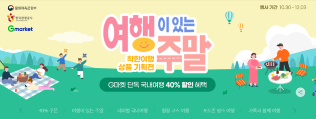 온라인 마켓플레이스 G마켓 내 착한여행 상품기획전 코너에서