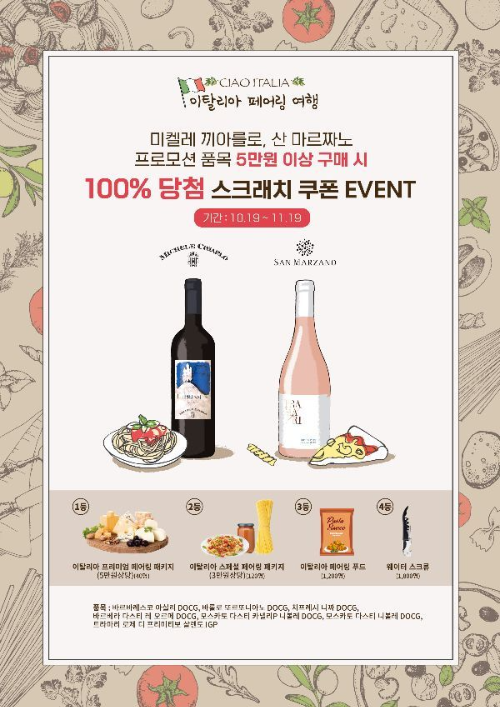 금양인터내셔날 프로모션을 통해 미켈레 끼아를로 산 마르짜노 와인 5만원 이상 구매 시