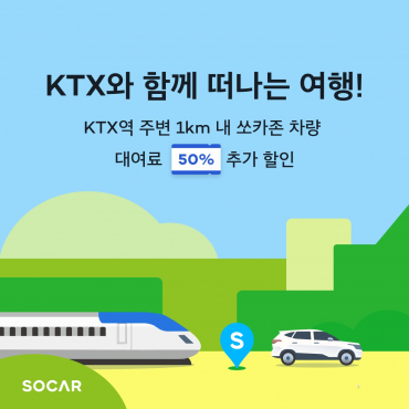 KTX와 함께 떠나는 여행을 통해 쏘카 회원은 KTX묶음상품 상시 할인 혜택에