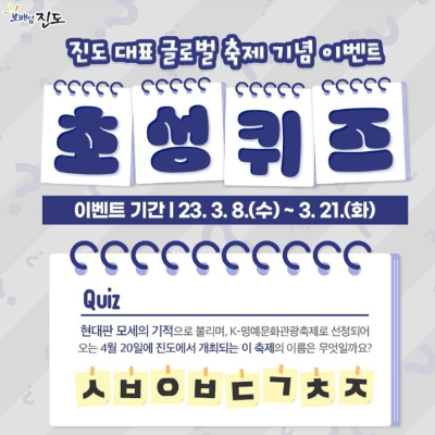 2023.4.20~진도군에서 개최되는 축제의 이름을 맞추면 된다.