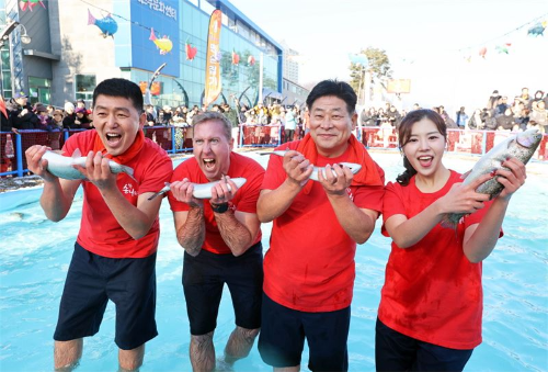 평창송어축제 송어 맨솝잡기와 실내 낚시터 입장객에게