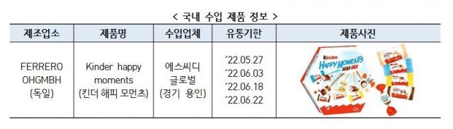 있는 킨더 초콜릿 제품에 대한 위해정보를 입수
