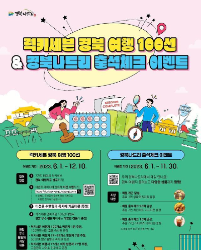 축제 100선을 지정 럭키세븐 경북여행 100선&경북나드리 출석체크 이벤트를 실시